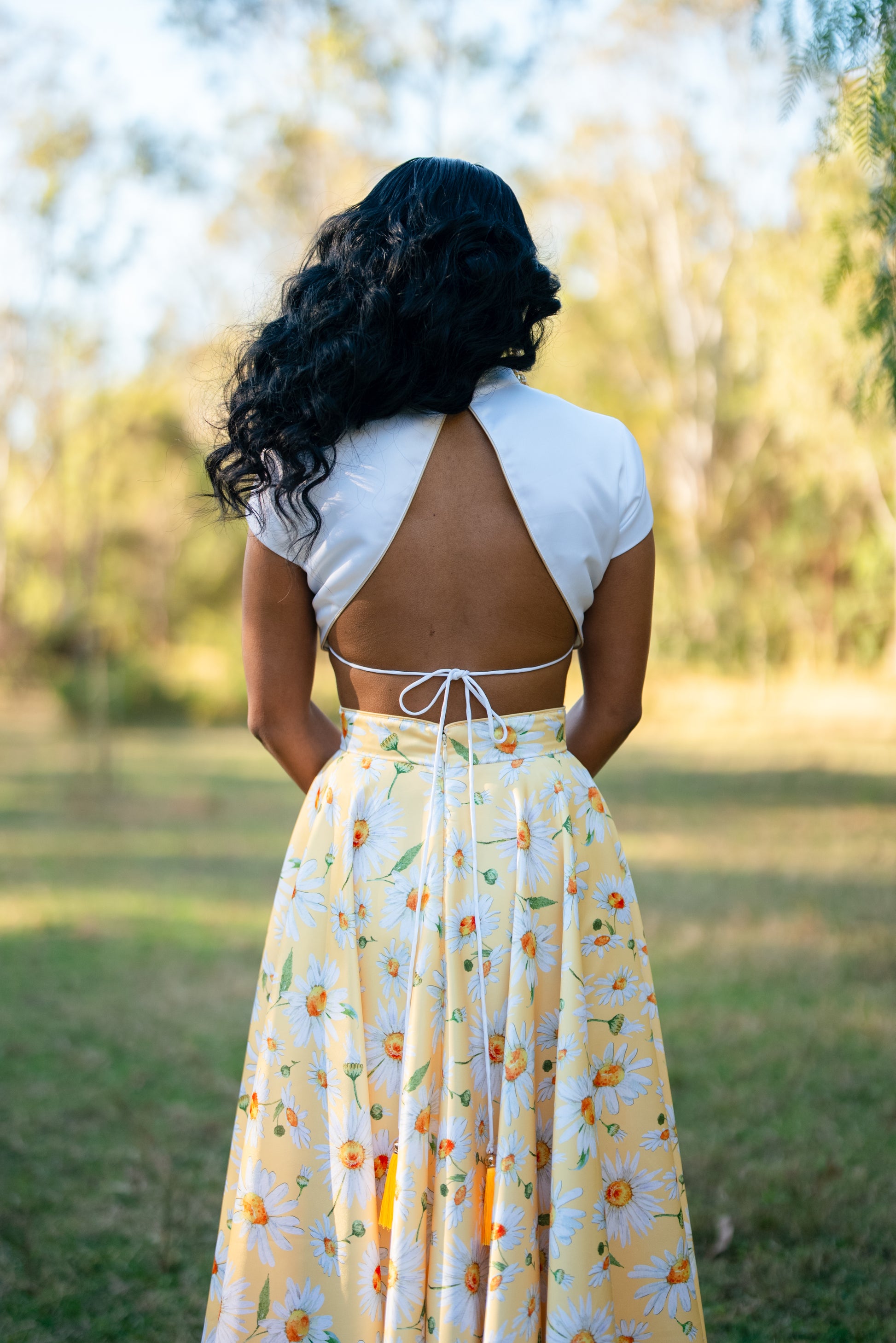 Exude confidence in the Amaya blouse in Snow White. With a glamorous open back accentuated by our signature mango tassels, this blouse makes a powerful statement that is sure to turn heads.