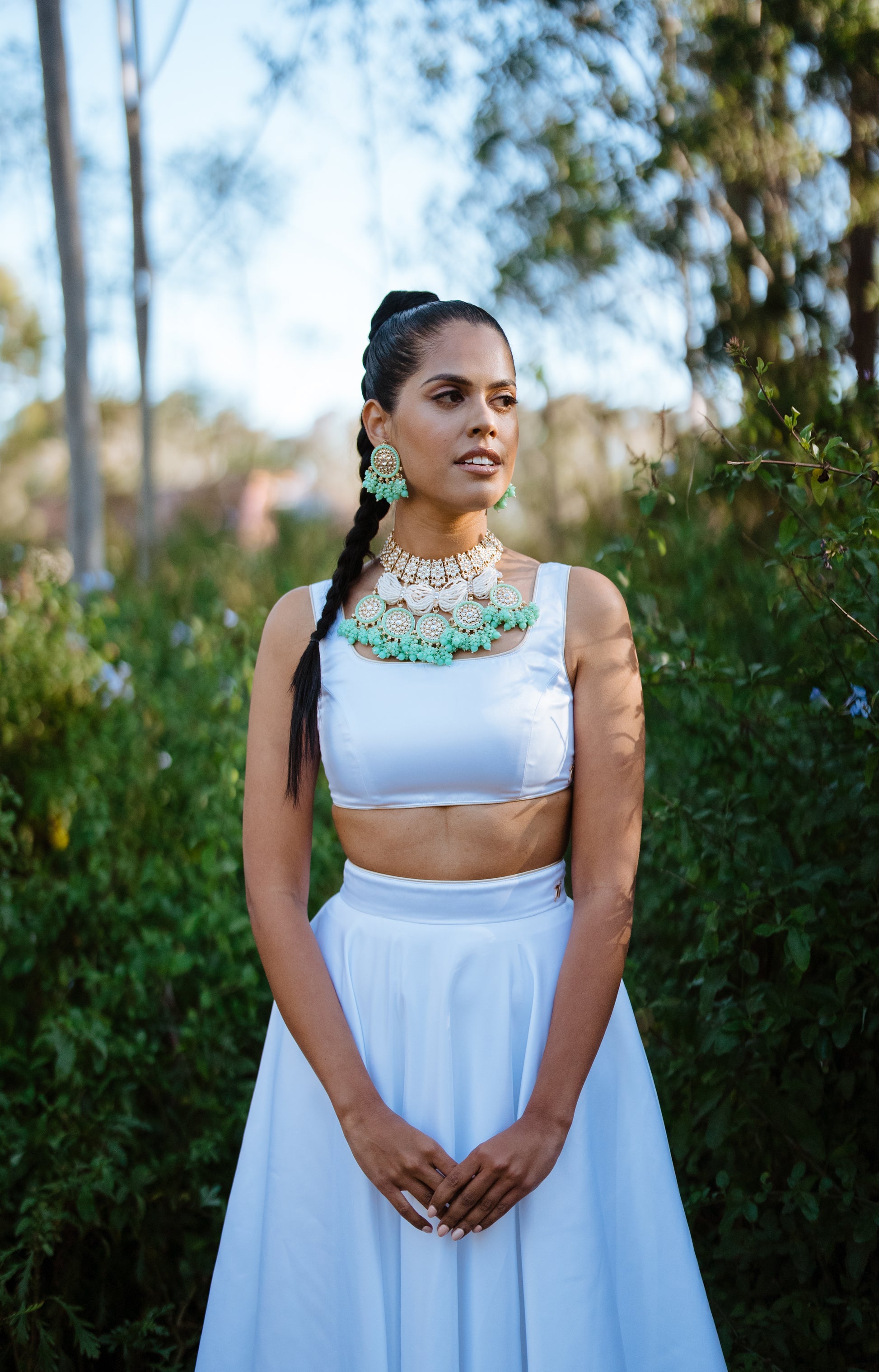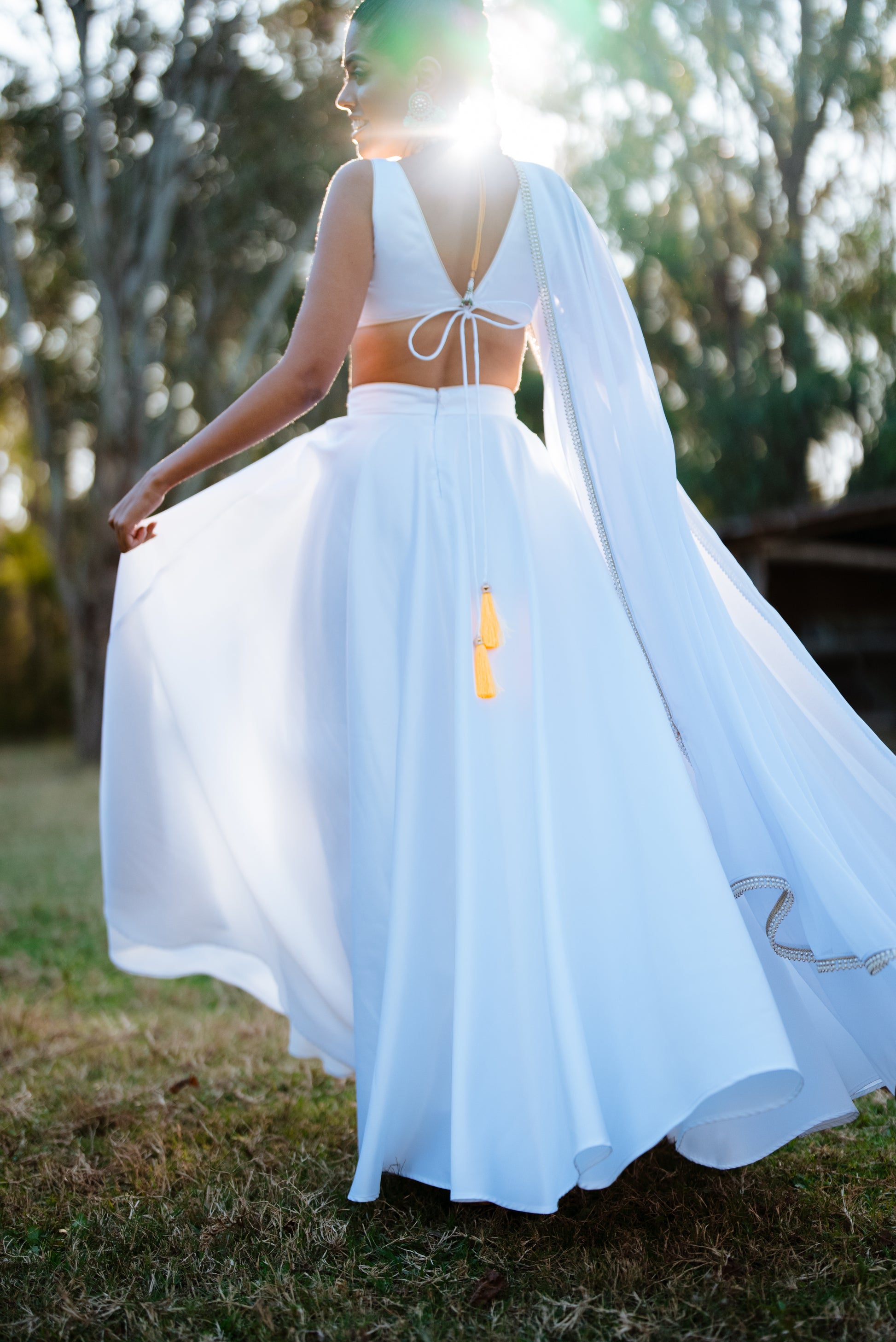 The Meera blouse in Snow White is sure to leave you glowing. With our v-shaped back and signature mango tassels, the beauty of this blouse is in its simplicity.