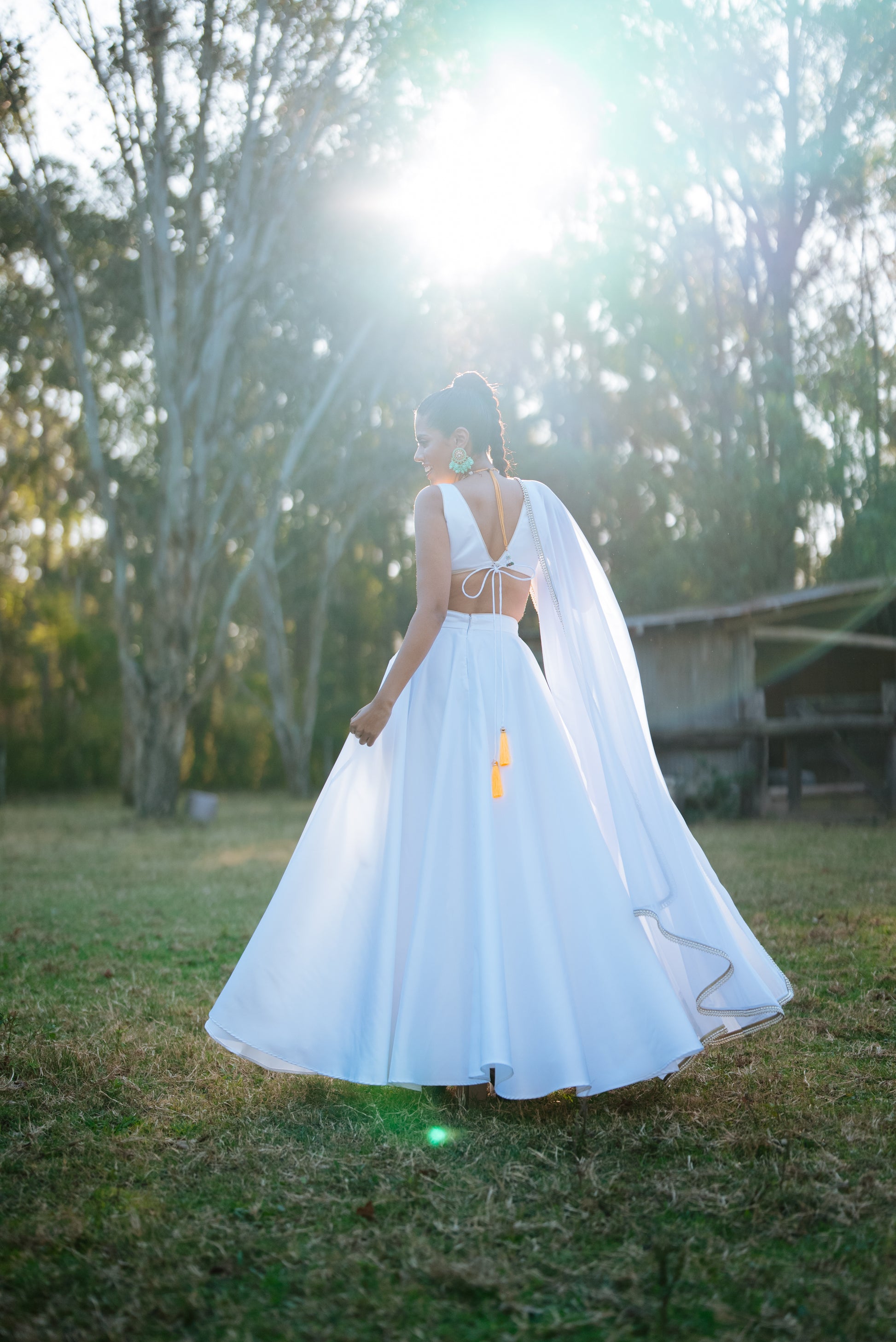 Meet the 'Whimsy in Bloom' skirt in Snow White. Boasting over four metres of gorgeous heavyweight silk satin, this skirt is sure to have you twirling through your next celebration.